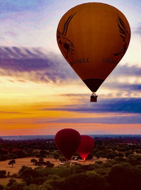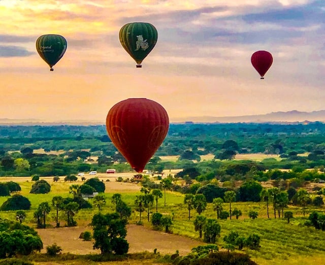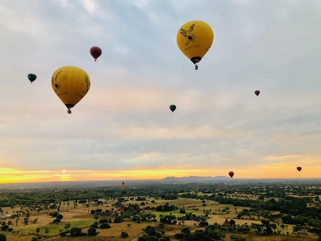 Essa foi uma experiência maravilhosa que eu recomendo a todos. Foi a nossa segunda vez voando de balão, a primeira foi na Capadócia, na Turquia. A empresa que escolhemos foi a Balloons Over Bagan. Nós pesquisamos bastante, pois haviam várias empresas prestando este serviço.
