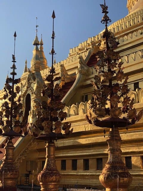 Pagoda Shwezigon – é um templo budista localizado em Nyaung-U. Consiste em uma estupa circular dourada cercada por templos e santuários menores. A construção do templo começou durante o reinado do Rei Anawrahta e foi concluída em 1102 d.C., durante o reinado do rei Kyanzittha da dinastia Pagan.