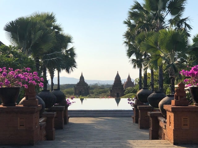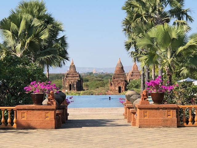 Nós escolhemos ficar no Aureum Palace Hotel & Resort Bagan, que é o único hotel/resort situado dentro da zona arqueológica. O hotel é um excelente 5 estrelas! Ele possui toda a estrutura de um grande resort de luxo. Os Quartos são amplos e bem equipados, além de piscina, área de lazer, restaurante (com direito a jantar na beira da piscina), campo de golfe e um mirante. Eu gostei muito, recomendo imensamente! Para fazer sua reserva no hotel, é só clicar neste LINK AQUI.