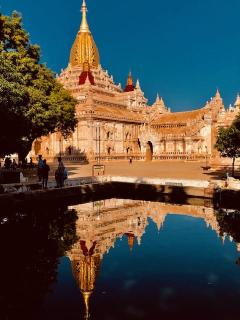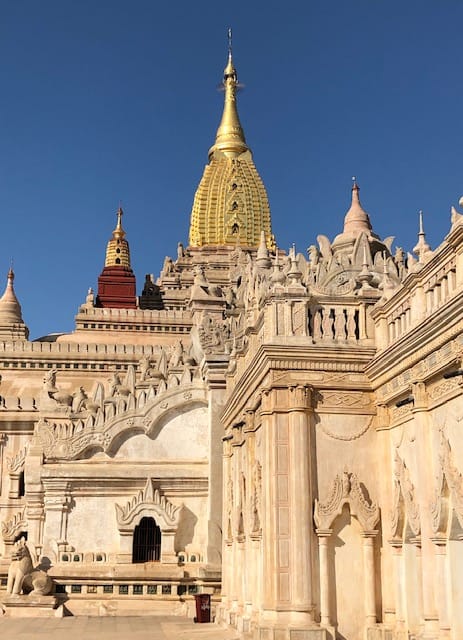 Templo Ananda – é um templo budista construído em 1105 d.C. durante o reinado do rei Kyanzittha (1084-1113) da dinastia Pagan. É um dos quatro maiores templos em Bagan. A disposição do templo é em formato de cruz com vários terraços que conduzem a um pequeno pagode no topo, coberto por um guarda-chuva conhecido como hti.