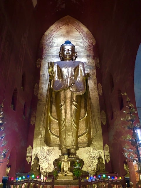 O templo possui quatro Budas em pé, cada um voltado para uma das quatro direções cardeais. Ananda é considerado uma maravilha arquitetônica, com uma fusão do estilo da arquitetura Mon e índiana. O impressionante templo também foi intitulado de “Abadia de Westminster da Birmânia”.