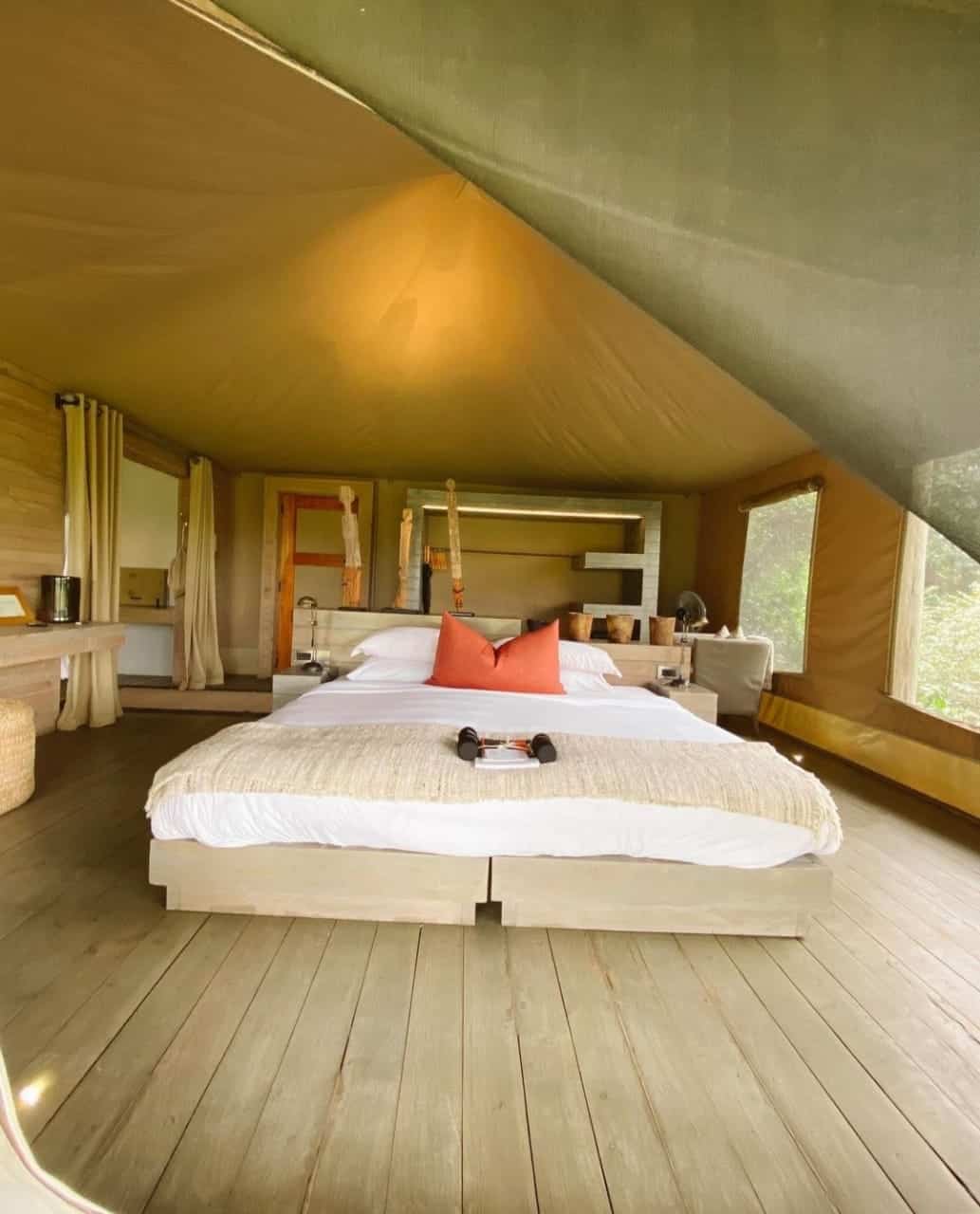 Nossa opção foi pela tenda superior e o quarto era muito espaçoso e confortável, com uma linda vista panorâmica.