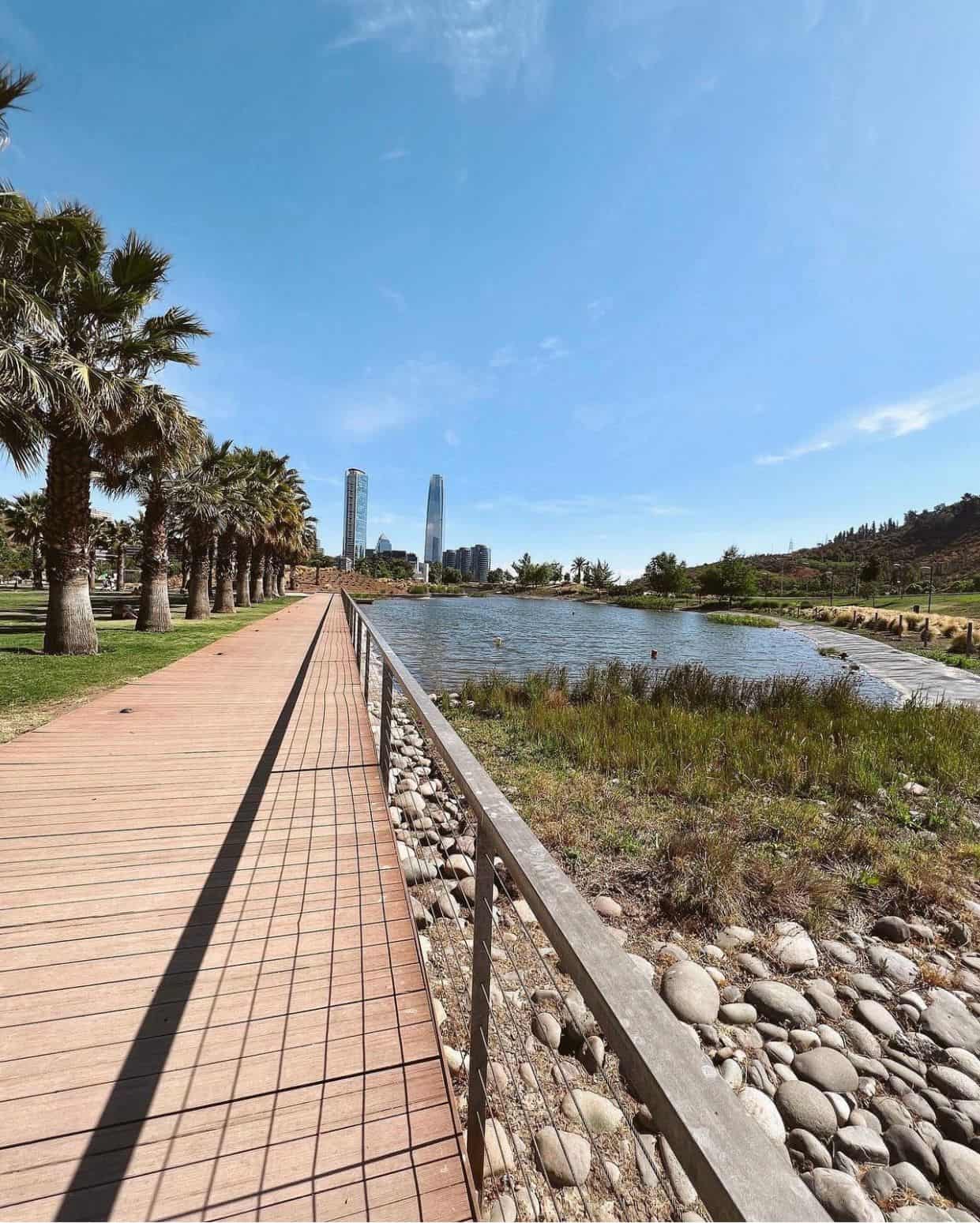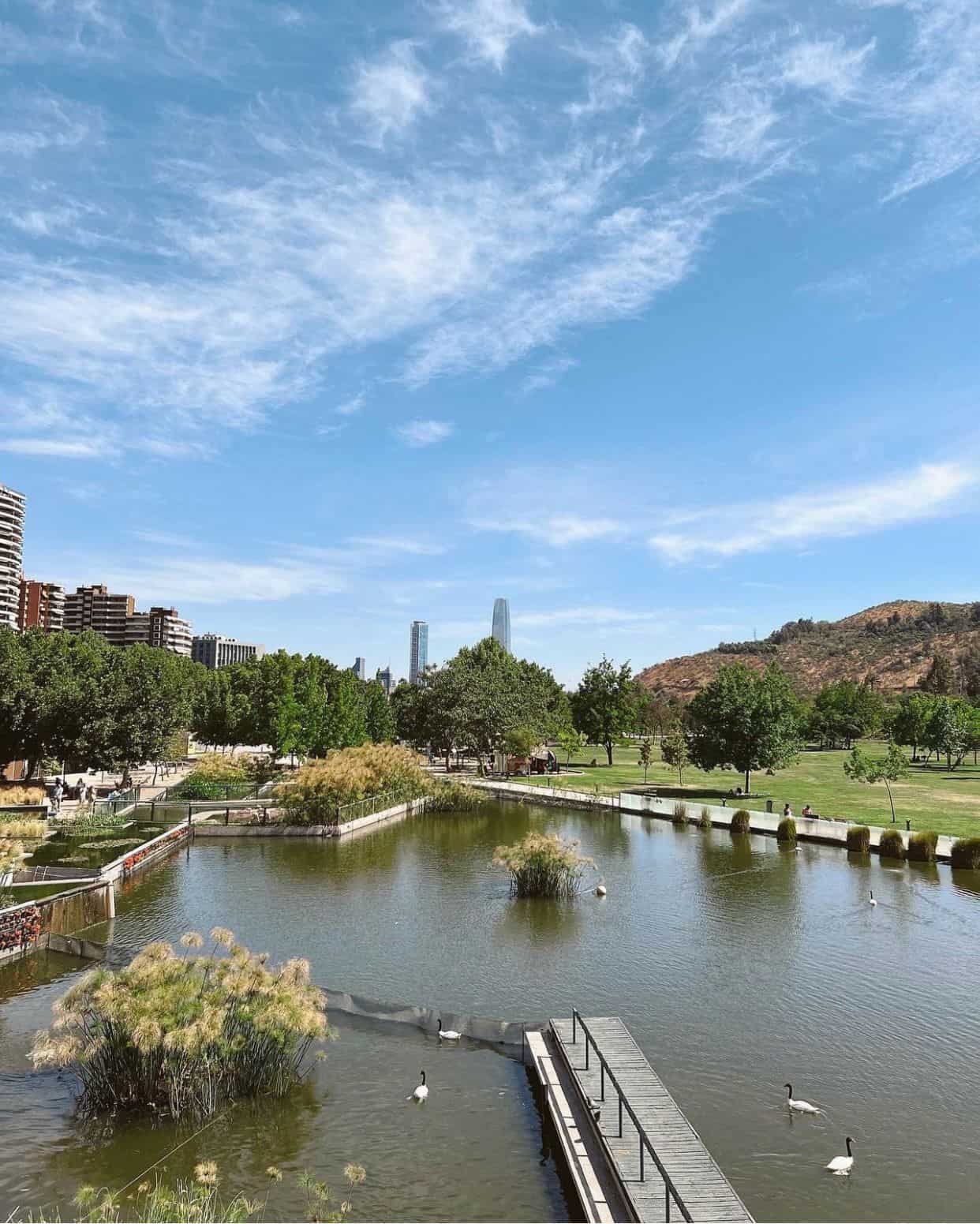 O Parque Bicentenário é uma das áreas ao ar livre mais bonitas de Santiago. Ele foi inaugurado em 2007 e tem 30 hectares. O único ponto negativo é que não está tão perto do centro turístico da cidade. Os seus atrativos incluem uma pequena lagoa com lindos flamingos e outras aves, brinquedos para as crianças, inúmeras obras de arte (estátuas de diferentes artistas chilenos) e food trucks. Por lá você também vai encontrar o Restaurante Mestizo. Super recomendo o passeio!