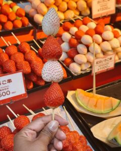 Há lojinhas de artesanato, restaurantes típicos e barracas que vendem comidas locais como bolinhos mochi, soba (macarrão de trigo sarraceno), e peixes grelhados.